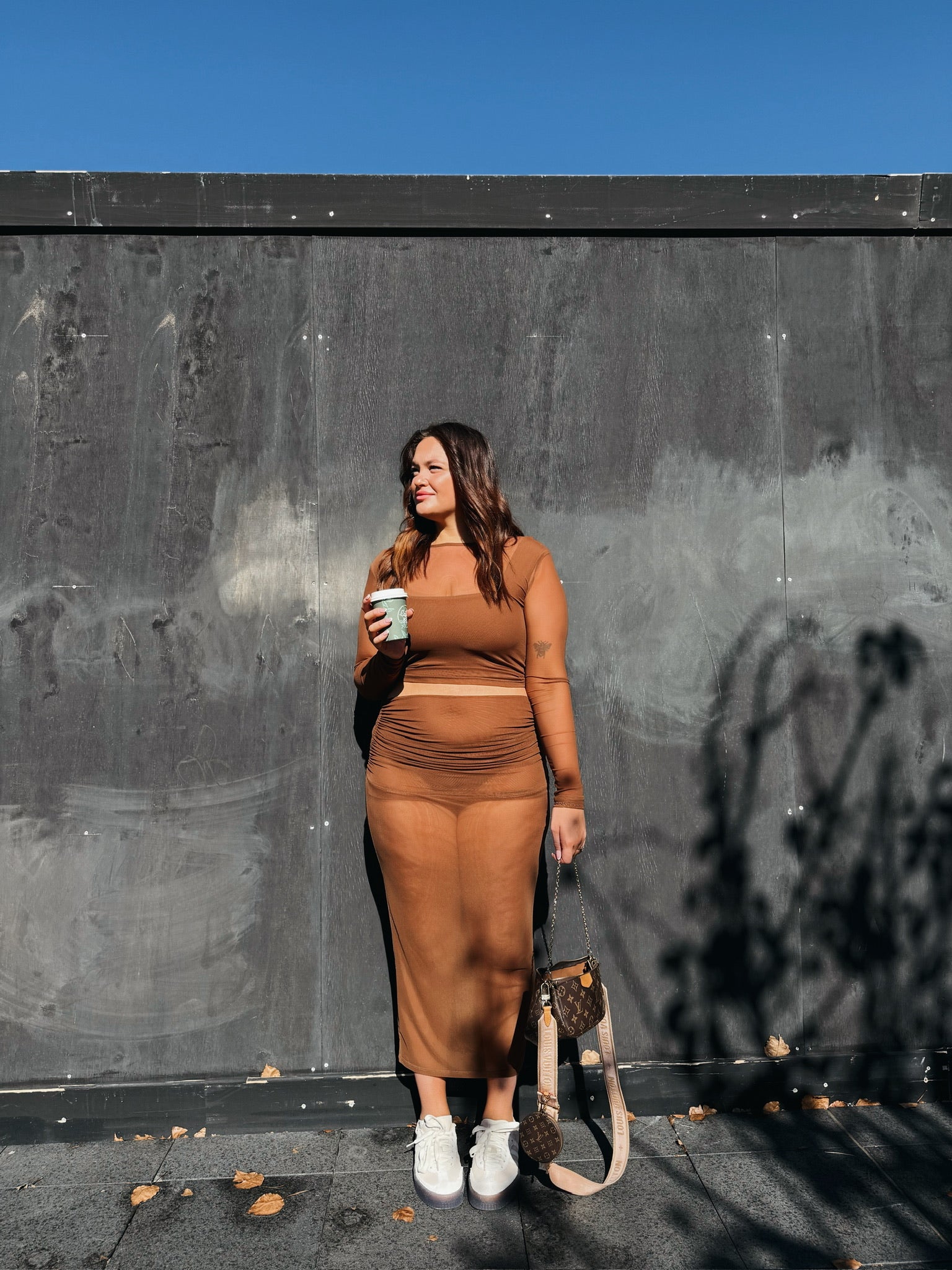 Meet the Shade + Stream Set, a curated pairing that blends ease with elegance. This set combines the structured softness of our Shade Long Sleeve with the fluid movement of the Stream Skirt, creating a silhouette that’s equal parts relaxed and refined. Available in our signature bark tone, it’s your go-to from daily errands to evening catch-ups.